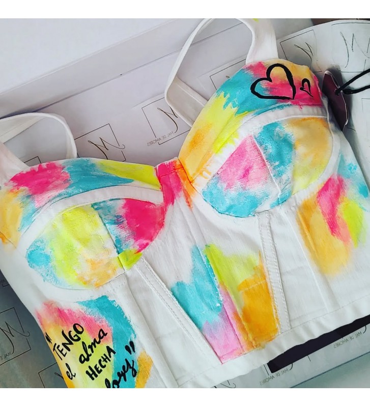 Colección de bustiers en varios tonos, hecho de piezas de mezclilla recicladas, con diseño propio, originales y atemporales, confeccionadas a mano, mediante un proceso artesanal por lo que hay variación en algunos diseños lo que hace que cada prenda sea versátil y única en su tipo.