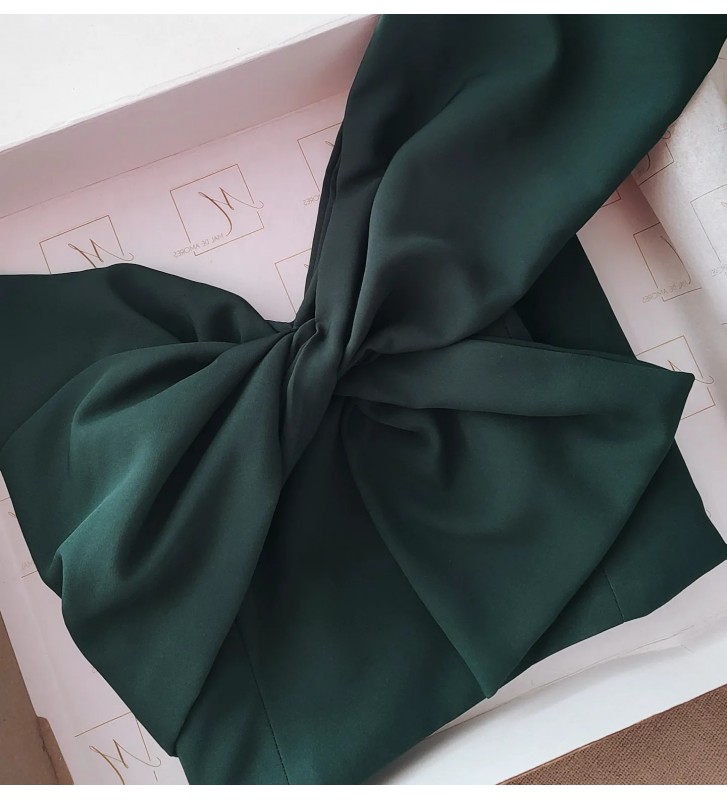 Bustier con escote strapless y lazo XL al frente que combina fuerza y feminidad. Su silueta favorecedora está confeccionada en tafeta stretch, brindando soporte y sofisticación. Perfecto para ocasiones en las que quieres impactar con elegancia sin esfuerzo. “Donde pisas, florece poder.”